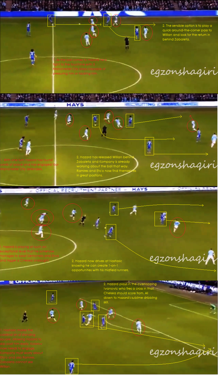 The way he skips past opponents is magical – I have never seen a player at Chelsea with his kind of balance, quickness or close control. He has a natural flair that is simply devastating and we are seeing it on a weekly basis now. The sheer volume of City fans opining that they have never seen Zabaleta made to look so ordinary is a testament to his performance. Mourinho’s trust in him and coaching has coaxed Hazard out of his shell and moulded him into the best young footballer in world football. He has put Lahm and Zabaleta to shame at times this season – how many people can say that?